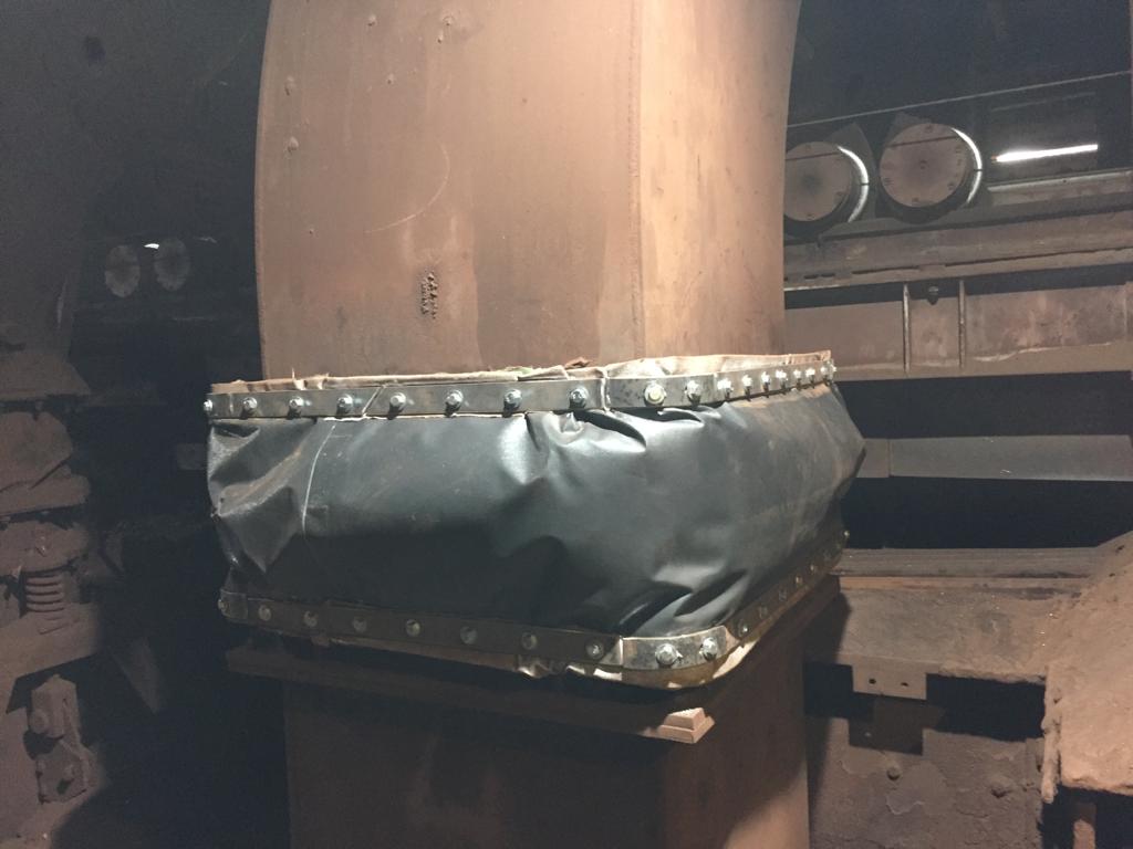 *Les anciens compensateurs textiles perçaient régulièrement, nous avons proposé de transformer les joints à bords tombés par des compensateurs plats avec l’ajout de brides en « L » inversé. Ce qui a permis la mise en place d’un bourrage entre le déflecteur et le compensateurs.